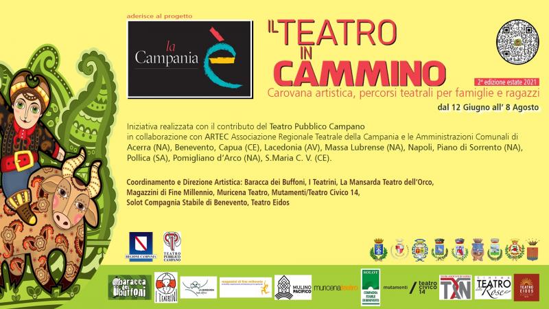 Teatro in cammino è un progetto ideato l’anno scorso per creare una rete di collaborazione post emergenza fra le diverse realtà del teatro ragazzi in Campania a cui fanno parte otto realtà teatrali. L’idea è portare il teatro nelle piazze e nei luoghi all’aperto per regalare momenti di bellezza e divertimento.