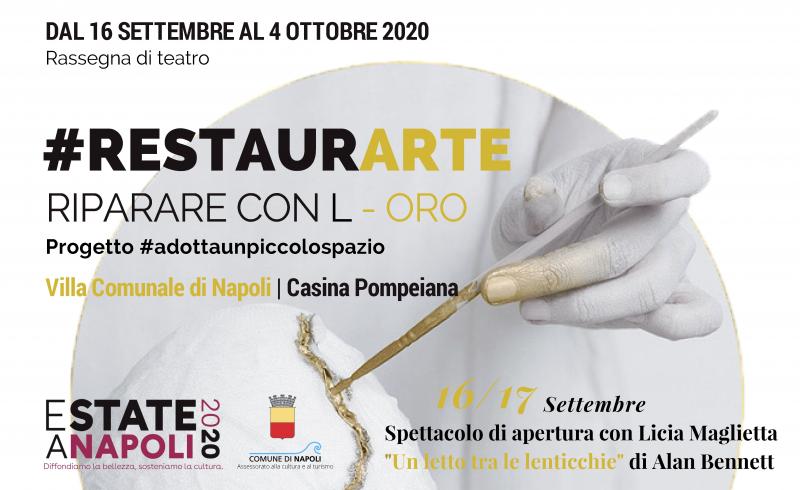 #Restaurarte|riparare con l-oro è la rassegna di teatro ideata dalle associazioni Piccola Città Teatro, Il Demiurgo e Putéca Celidònia, che, dal 16 settembre al 4 ottobre 2020, si terrà nella Villa Comunale di Napoli, ingresso Riviera di Chiaia.