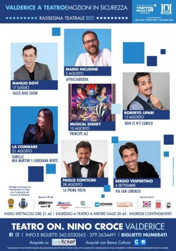 Dopo il successo riscosso nell'estate 2020, riparte a Valderice (TP) presso il Teatro On. Nino Croce, dal 17 luglio al 4 settembre, la rassegna estiva “Valderice A Teatro, Emozioni in sicurezza”, con il Patrocinio del Comune di Valderice e la collaborazione dell'Associazione Tuille e Bantu.
