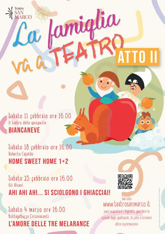 Dopo il grande successo dell'ultima edizione, le richieste di aumentare le date e gli spettacoli e l'evidente grande voglia di proposte teatrali per tutti, il Teatro San Marco ha deciso di iniziare il 2023 con una novità importante: La famiglia va a teatro si propone anche a febbraio.