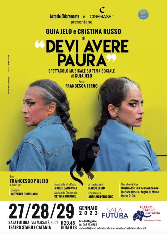 Debutta il 27 gennaio, in prima nazionale nella Sala Futura del Teatro Stabile di Catania, ‘Devi avere paura’, spettacolo musicale scritto e interpretato da Guia Jelo, con la regia suggestiva e molto particolare di Francesca Ferro e con i testi di Francesco Pulejo e Aldo Nicolai. I costumi sono di Giovanna Giorgianni. Sul palco anche la cantante new soul Cristina Russo, con la sua band neo-soul combo, in un tributo, tra gli altri, anche all’artista Amy Winehouse. Ancora una volta sono centrali, nella produzione di Cinemaset e Antonio Chiaramonte, i temi sociali. “Il nome Sala Futura dello spazio del Teatro Stabile di Catania riservato a spettacoli particolari, un po’ d’élite, super moderni, attuali, di scoperta, di ricerca, non poteva essere più azzeccato di quanto non lo sia in questo momento della mia carriera – commenta Guia Jelo - Mia nonna diceva: ‘Il vecchio seduto e col bastone ancora imparava’. Come dire, ancora ci si può evolvere. La mia evoluzione – spiega l’attrice - è questa spinta che ho verso il teatro, seppur e perché no, nella tradizione, nei tratti di comicità, deve essere moderno e modernizzato, come se avessi vent’anni e fossi all’inizio. Dentro, nel mio teatro della maturità, deve esserci un tema sociale, un tema di rivolta, di ammonimento, di accusa. Il Teatro Stabile di Catania è stato la mia culla e adesso mi accoglie in questo mio proposito evolutivo, in questa mia volontà di suscitare interesse, passione, ilarità su temi importanti, che hanno valore. E per il Teatro Stabile di Catania, che è un ente pubblico, il valore deve essere anche questo”. ‘Devi avere paura’, prodotto e realizzato da Antonio Chiaramonte di Cinemaset, insieme all’associazione ‘Antimafia e Legalità’, di cui è presidente l’avvocato Enzo Guarnera, rappresenta un altro grande esempio del significativo e virtuoso percorso compiuto da Cinemaset per l’impegno sociale e la legalità, con una particolare attenzione al mondo delle scuole e dei giovani. “Lo spettacolo vive delle mie speranze, dello sguardo a qualche rinascita per il futuro dei miei nipoti, della mia veemenza artistica, dei miei tratti di comicità, ma sicuramente anche di dramma, con i due monologhi scritti con coraggio da Francesco Pulejo, sul tema della droga “– prosegue Guia Jelo - Avere come regista Francesca Ferro è una cosa importantissima per me, sul piano della mia evoluzione artistica, ma anche umana. Che dire di Cristina Russo e della sua band? È un inno, un urlo disperato contro la droga, contro il mostro di cui avere paura, che ha ucciso molta arte. Ho scritto questo testo spinta principalmente dal mio amore per Amy Winehouse, un doloroso mito a cui abbiamo voluto rendere un omaggio e con dei pezzi cover ma, a tratti, personalizzati dallo stile di Cristina Russo”. Lo spettacolo sarà di nuovo in scena il 28 e il 29 gennaio.