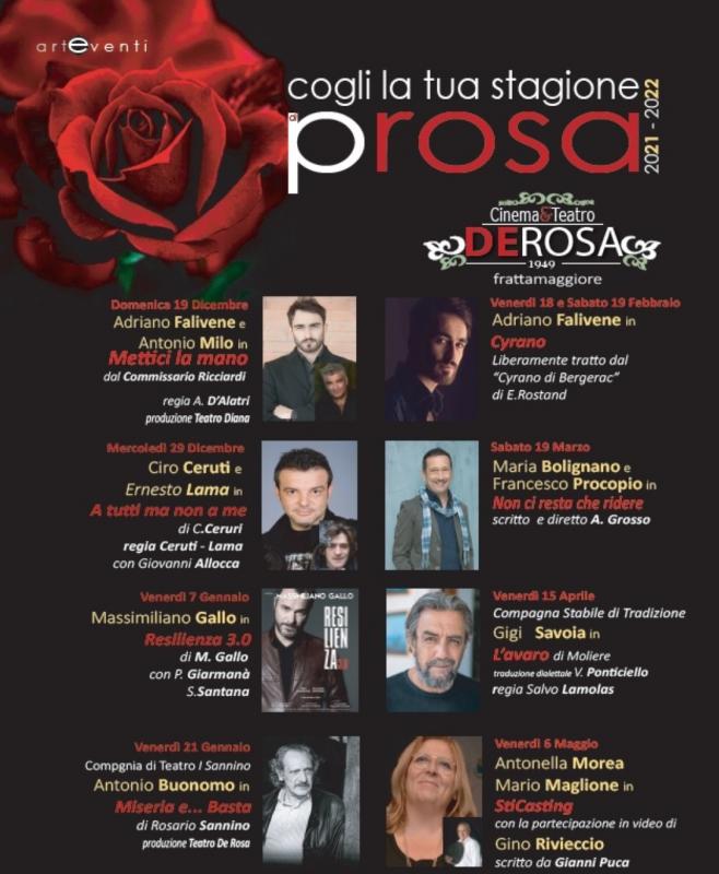 Con queste premesse della famiglia De Rosa e con la nuova direzione artistica di Salvatore e Rosario Sannino, si presenta la stagione teatrale 2021/22 che vede i seguenti spettacoli in cartellone: