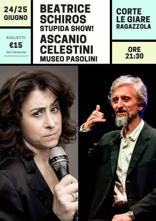 Si comincia venerdì 24 giugno alle ore 21.30 con lo spettacolo “Stupida Show. Capitolo 1 – Cattivi pensieri” con la prorompente Beatrice Schiros in una produzione firmata Carrozzeria Orfeo. Attrice comica dissacrante e antieroina per eccellenza, Beatrice Schiros svela i vizi, i lati oscuri e la follia di chi nella vita ha sempre inciampato malamente, di chi è stufa di sopportare e ha voglia di dircene quattro. Un monologo comico da stand up comedy scritto da Gabriele Di Luca per l’attrice iconica di Carrozzeria Orfeo, da “Thanks for vaselina” a “Miracoli metropolitani”, qui impegnata in un dialogo tragicomico con la contemporaneità, per smascherarne finti buonismi e ipocrisia. Beatrice Schiros è già stata graditissima ospite anni fa del Teatro di Ragazzola con Giuliana Musso nello spettacolo “Tanti saluti”.