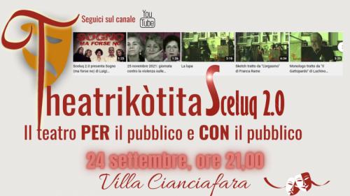 Theatrikòtita: l'evento che Sceluq ormai di consuetudine propone in occasione della ripresa dell'attività di formazione del Cantiere teatrale Sceluq 2.0, che quest'anno si presenterà con interessanti novità.
