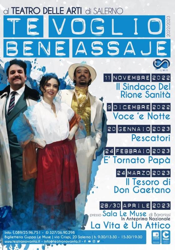 Cinque spettacoli per cinque modi di dire e fare teatro di tradizione. L’edizione 2022/2023 della rassegna teatrale “Te voglio bene assaje” in programma al Teatro delle Arti a Salerno punta sui titoli che hanno fatto la storia di un modo di interpretare che non ha mai perso il suo appeal. La direzione artistica è di Serena Stella.
