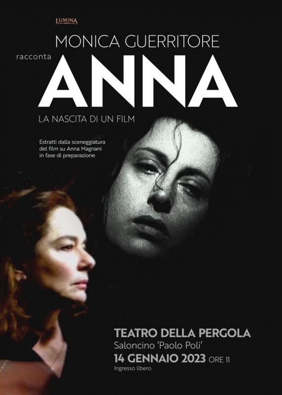 Il 26 settembre 2023 ricorrono i 50 anni dalla morte di Anna Magnani, la prima attrice italiana a vincere l’Oscar. Secondo Monica Guerritore, celebrarla è un dovere del mondo dello spettacolo e, in particolare, per lei donna, prima che interprete, raccontarne la vita difficile, l’immenso talento, e la forza del carattere. La nuova avventura del film Anna inizia, dunque, con un racconto vero e sincero al Teatro della Pergola del lavoro di Monica Guerritore come autrice e regista oltre che interprete, racconto rivolto al pubblico e condiviso con il pubblico.