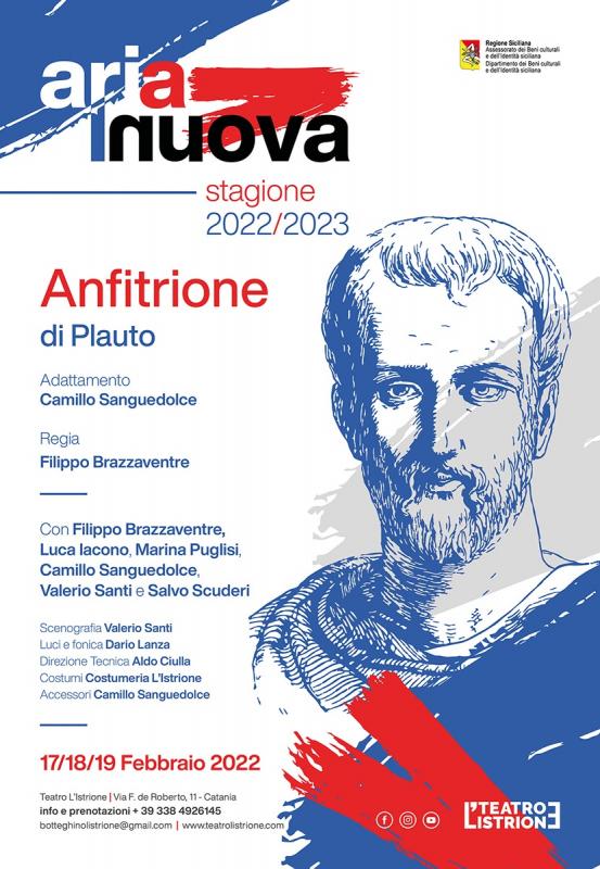 Catania – Come quarto appuntamento della stagione teatrale 2022/2023 “Aria Nuova”, il Teatro L’Istrione, in via Federico De Roberto 11, a Catania, diretto da Valerio Santi, mette in scena venerdì 17 febbraio 2023, alle ore 21.00, con repliche sabato 18 e domenica 19 (ore 18.00), la pièce “Anfitrione” di Plauto, nell’adattamento di Camillo Sanguedolce e con la regia di Filippo Brazzaventre.
