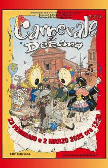 La 136a Edizione del Carnevale di Decima si svolge nei giorni Domenica 23 Febbraio e Domenica 02 Marzo 2025 mentre il Carnevale Notturno si svolgerà Sabato 31 Maggio 2025.