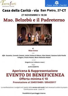 SABATO 27 NOVEMBRE ALLA “CASA DELLA CARITA’” DI VIA SAN PIETRO 27 A CATANIA SERATA DI BENEFICENZA CON APERICENA E SPETTACOLO DELL’ASSOCIAZIONE TERRE FORTI “MAO, BELZEBÙ E IL PADRETERNO” DI NINO GRECO