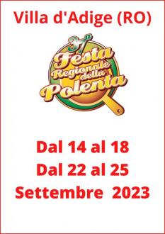 Dal 14 al 18 e dal 22 al 25 Settembre 2023 si svolge la 37a Festa Regionale della Polenta di Villa d’Adige.