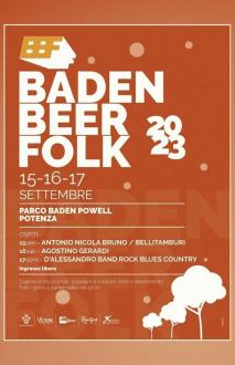 Inizio con il botto Venerdì 15 Settembre il Baden Beer Folk 2023. Ad aprire le tre serate al Parco Baden Powell di Potenza "Antonio Nicola Bruno e belli tamburi". Il gruppo presenterà una carrellata di brani che si identificano in un folk metropolitano come lo definisce Antonio Nicola. Sabato 16 sarà la volta di Agostino Gerardi e Domenica 17 chiuderà la kermesse la D'Alessandro Band. Con questo evento la cooperativa Venere vuole concludere l'estate 2023 insieme a tanti cittadini che hanno animato le serate del parco.