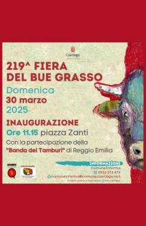 Domenica 30 Marzo 2025 dalle ore 8.00 le piazze e le vie del centro saranno in festa per la tradizionale Fiera del Bue Grasso a Cavriago.
