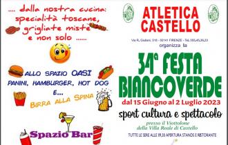 La società Atletica Castello Vi invita alla 30^ Festa Biancoverde dal 15 Giugno al 2 Luglio 2023 : di sport, cultura e spettacolo presso il Viottolone della Villa Reale di Castello