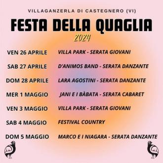 Festa della quaglia allo spiedo a Villaganzerla di Castegnero (VI) Il 26, 27, 28 aprile e 1, 3, 4, 5 Maggio 2024
