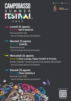 Campobasso Summer Festival 22 - 23 - 24 -25 agosto 2022 Parco “E. De Filippo”, nel quartiere San Giovanni
