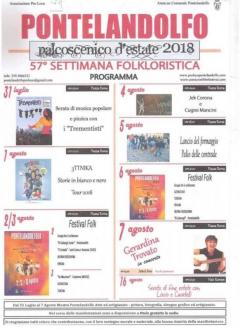 Palcoscenico d'Estate e Settimana Folkloristica - PONTELANDOLFO dal 31.07.2018 al 16.08.2018 Organizzato da Pro Loco e Comune di Pontelandolfo, il calendario degli appuntamenti musicali, gastronomici e sportivi è sempre ricco: il 2, il 3 ed il 6 agosto, il Festival Folk vedrà l'esibizione di tanti gruppi folkloristici provenienti da tutta Italia ed anche dall'estero; il 5 agosto, si terrà il Palio delle Contrade con il Lancio del Formaggio; in altre sere ci saranno vari concerti; infine il 16 agosto liscio e cavatelli chiuderanno i festeggiamenti estivi.