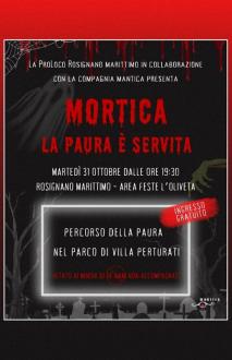 La ProLoco Rosignano Marittimo con la collaborazione di Mantica, dopo le civette, propone....... MORTICA, LA PAURA È SERVITA, un percorso da fare vietato ai minori di 14 anni, la festa avrà inizio intorno alle 17 del 31/10, presso l'area feste l'oliveta,con una caccia al tesoro per bambini da 6 a 12 anni, alle 19.00 apertura del ristorante con menù a tema halloween, giochi per piccoli, bevande per adulti, area foto, area dance, premio miglior maschera e un sacco di cose che troverete ad accogliervi, condividete tutti e rendiamo questa prima festa di halloween...... UNICA NELLA ZONA....