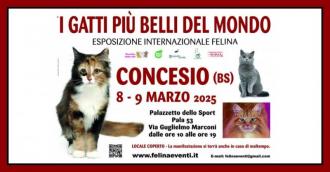 Il Palazzetto dello Sport di Concesio (Via Guglielmo Marconi, 53) ospiterà il prossimo 8 e 9 marzo l'Esposizione Internazionale Felina “I GATTI PIU' BELLI DEL MONDO”, un evento dedicato agli amanti dei felini e agli appassionati di gatti di razza.
