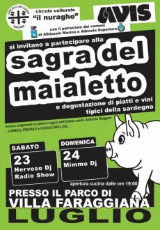 Il 23 e 24 luglio 2016 al Parco Faraggiana di Albissola Marina si svolge la Sagra del Maialetto, organizzato da Avis comunale di Albissola e Associazione Nuraghe di Savona, dove si può gustare il maialetto sardo, cucinato secondo tradizione e delizie sarde.