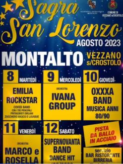 Dal 8 al 12 agosto 2023 si svolgera' la Sagra Di San Lorenzo a Montalto presso la sede di Polisportiva in Via Cà de Miotti 1,