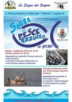 - SABATO 1 SETTEMBRE: a partire dalle 18.30, presso il Campo Sportivo di Goro, in collaborazione con la Pro Loco di Goro degustazione gratuita di pesce azzurro e aperitivo. Interverranno il biologo, Francesco Paesanti e la nutrizionista, Gessica Passarella.