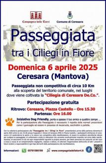 La Compagnia delle Torri, con il Patrocinio del Comune di Ceresara (MN), organizza domenica 6 aprile 2025 una passeggiata non competitiva di circa 10 Km alla scoperta del territorio comunale, nei luoghi dove viene coltivata la “Ciliegia di Ceresara De.Co.”, che toccherà le principali coltivazioni al momento della fioritura primaverile degli alberi.