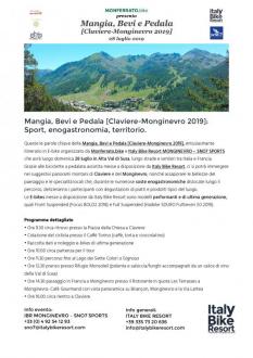 Queste le parole chiave della Mangia, Bevi e Pedala [Claviere-Monginevro 2019], entusiasmante itinerario in E-bike organizzato da Monferrato.bike e Italy Bike Resort MONGINEVRO – SNO7 SPORTS che avrà luogo domenica 28 luglio in Alta Val di Susa, lungo strade e sentieri tra Italia e Francia.