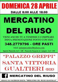 Domenica 28 aprile 2019 viene organizzato il Mercatino del Riuso a Santa Vittoria Di Gualtieri (Re) presso Palazzo Greppi.