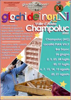 - Maggiori info mercatino delle curiosità: Mercatini&Curiosità +39 335 297842 oppure sito web ufficiale www.mercatiniecuriosita.com/champoluc - Maggiori info percorso ludico culturale dei Giochi dei Nonni: Edoardo 346 6409936 oppure www.giochideinonni.com