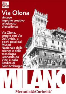 il mercatino delle curiosità Little Market con bancarelle di artigianato etnico ed artistico, vintage e ingegno a carattere creativo presso il marciapiede di Via Olona, a pochi passi dalla Basilica di Sant'Ambrogio e dal Museo della Scienza e della Tecnologia Leonardo da Vinci, nel centro storico di Milano. . .Il mercatino delle curiosità è previsto in modo calendarizzato e periodico per due giovedì al mese dalle ore 8 alle 18.