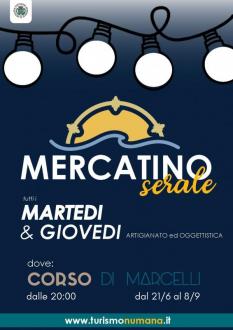A Marcelli, frazione del Comune di Numana in provincia di Ancona si svolge ogni martedì e giovedì dal 21 Giugno al 08 Settembre 2022 il Mercatino Artigianato e Oggettistica.